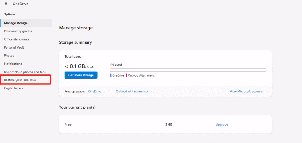 You can restore your entire OneDrive to a previous date in case you removed a lot of files in the OneDrive by mistake, or they got corrupted due to ransomware. This is a good option that can be used to recover vast quantities of files. The following is how to recover permanently deleted files from OneDrive by restoring the entire cloud drive.