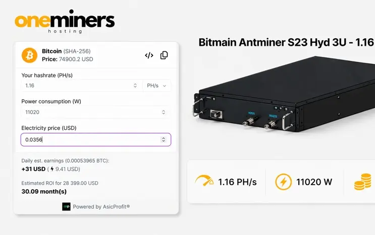Oneminers’ profitability model is primarily driven by its ability to secure long-term, fixed electricity pricing combined with large-scale operational efficiency. By offering hosting rates as low as $0.0455 per kWh in key markets such as the United States, the company positions its clients to operate significantly below the industry average cost of production, which is a critical determinant of mining margins. The seven-year fixed power contracts further reduce exposure to energy price volatility—historically one of the biggest risks in Bitcoin mining—allowing for more predictable cash flow modeling and long-term planning. When combined with high uptime levels, rapid deployment capabilities, and the use of modern ASIC hardware such as the Bitmain Antminer S23 series, these factors can materially improve breakeven timelines. Under stable network conditions and favorable Bitcoin pricing, such a structure has the potential to deliver return on investment within a sub-12-month horizon, with accelerated scenarios and smart AI mining feature approaching 8 months depending on market variables, mining difficulty, and individual operational configurations.